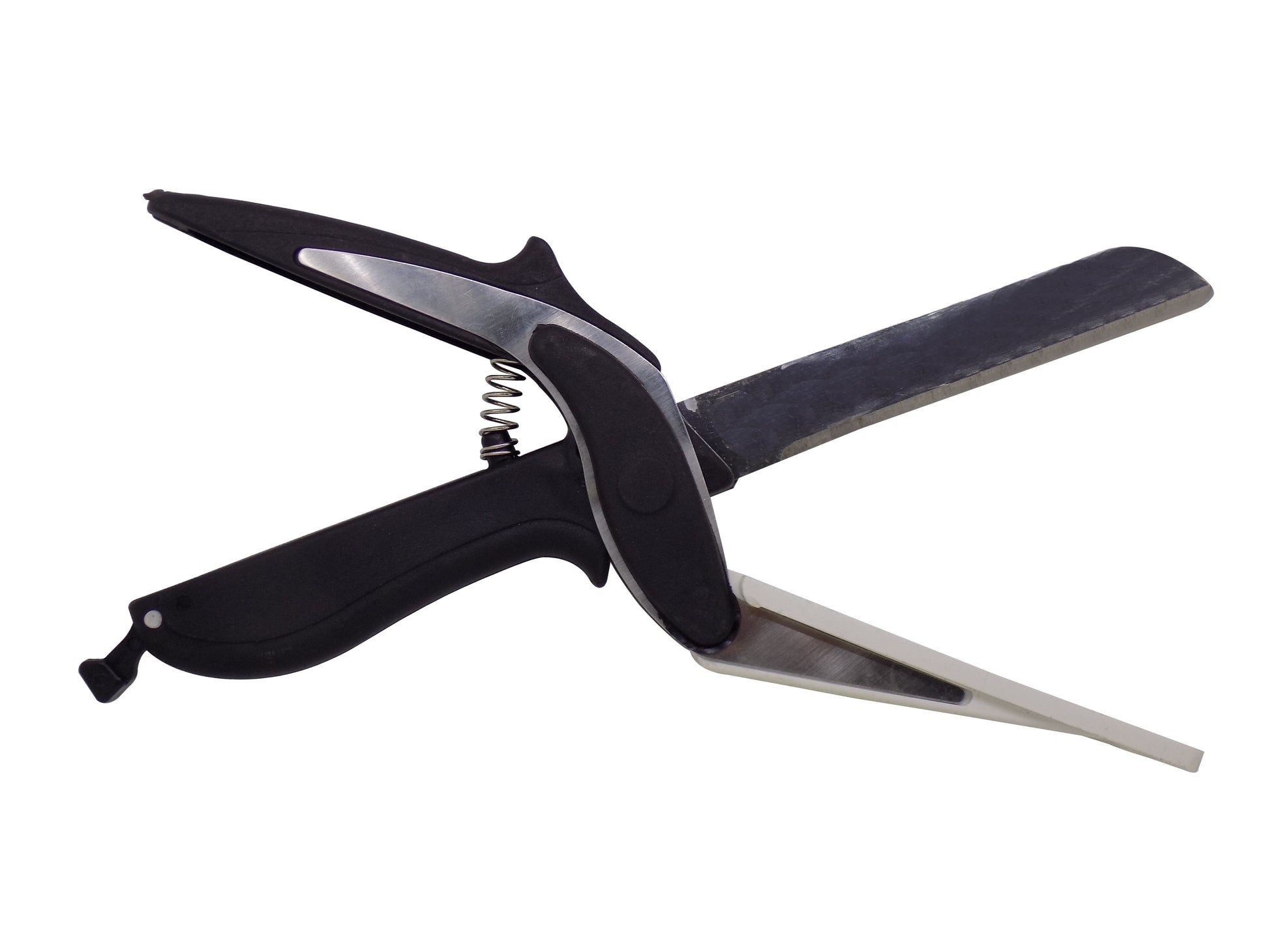 Smart Cutter is the revolutionary 2-in-1 knife and cutting board that chops and slices your favorite foods in seconds! The secret of the 2-in-1 design is the ergonomic power pressure handle which helps you to effortlessly cut through food fast! Smart Cutte, premium blade and extra wide mouth makes cutting fruits, veggies, meats and more fast, easy, and mess-free. Detachable, easy for cleanup. The safety latch prevents from accidental cut also make it easy storage. Convenient for picnics and camping trips
